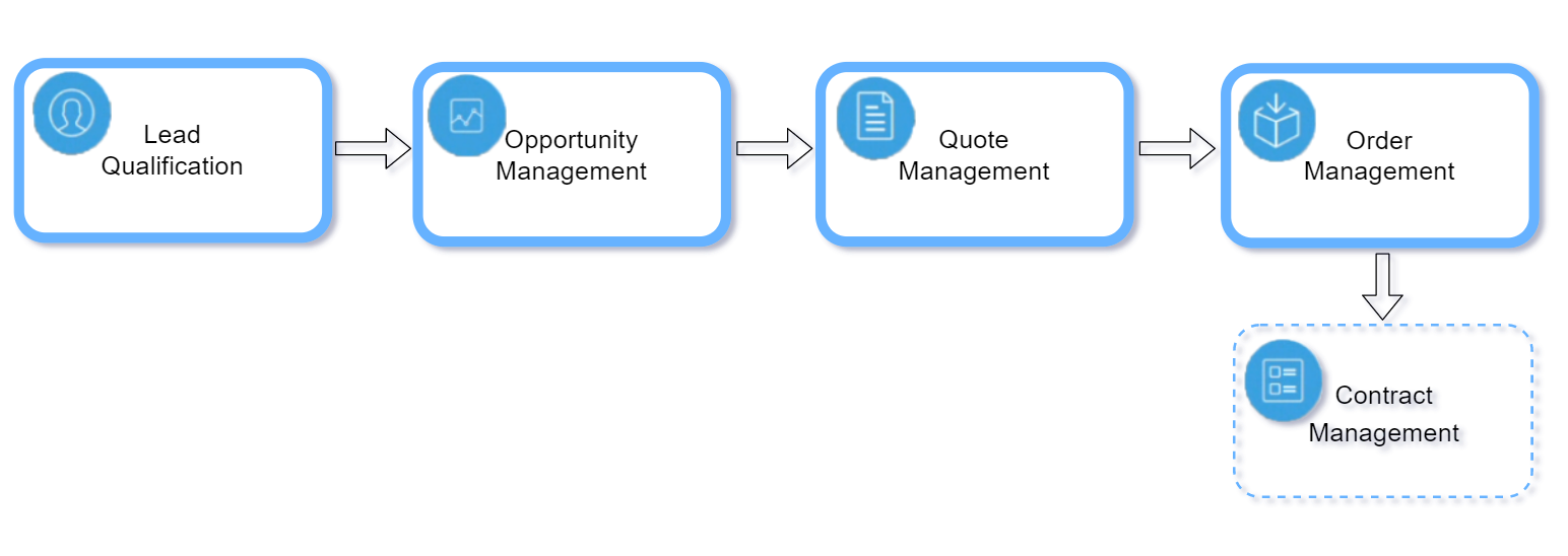 The Lead-to-Order process is an end-to-end process which starts with a potential customer's intent to buy a product, up to the fulfillment of this sale. See the illustration below.