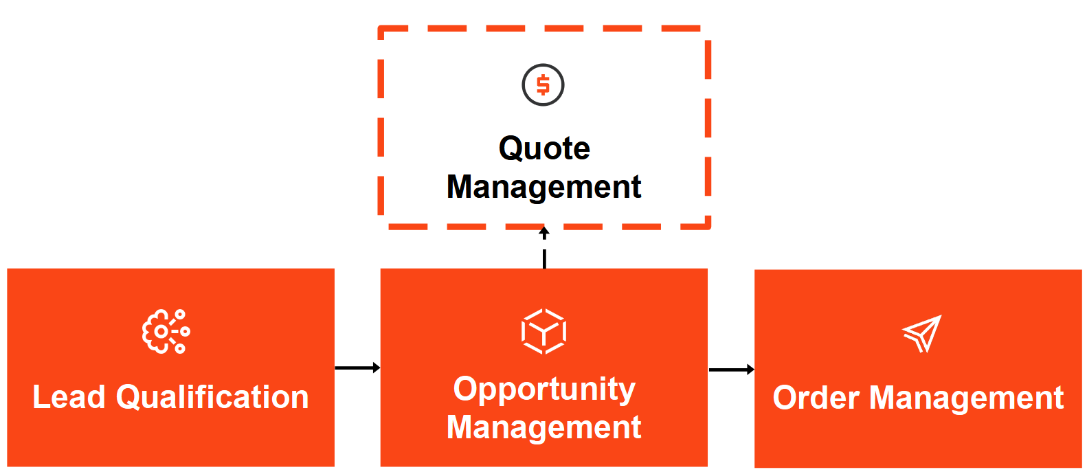 As a lead qualifies into an opportunity, the sales team will work on the opportunity together with the potential customer, to identify the need and suggest an appropriate product or service which will meet this need. Part of the process may involve generating a quote to the customer, but this is not always the case. In case the opportunity is won, this will generate one or more orders to fulfill the won opportunity. In Salesforce, this is tracked via the Opportunity object, and optionally, the Quote object.
