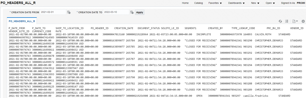 | CREATION_DATE | datetime | Who column: indicates the date and time of the creation of the row. |