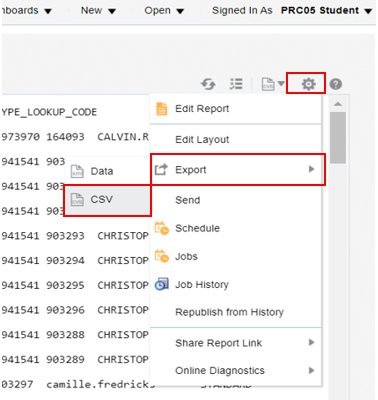 Note: To generate the csv files it is required to use Oracle Transactional Business Intelligence (OTBI) tool.
